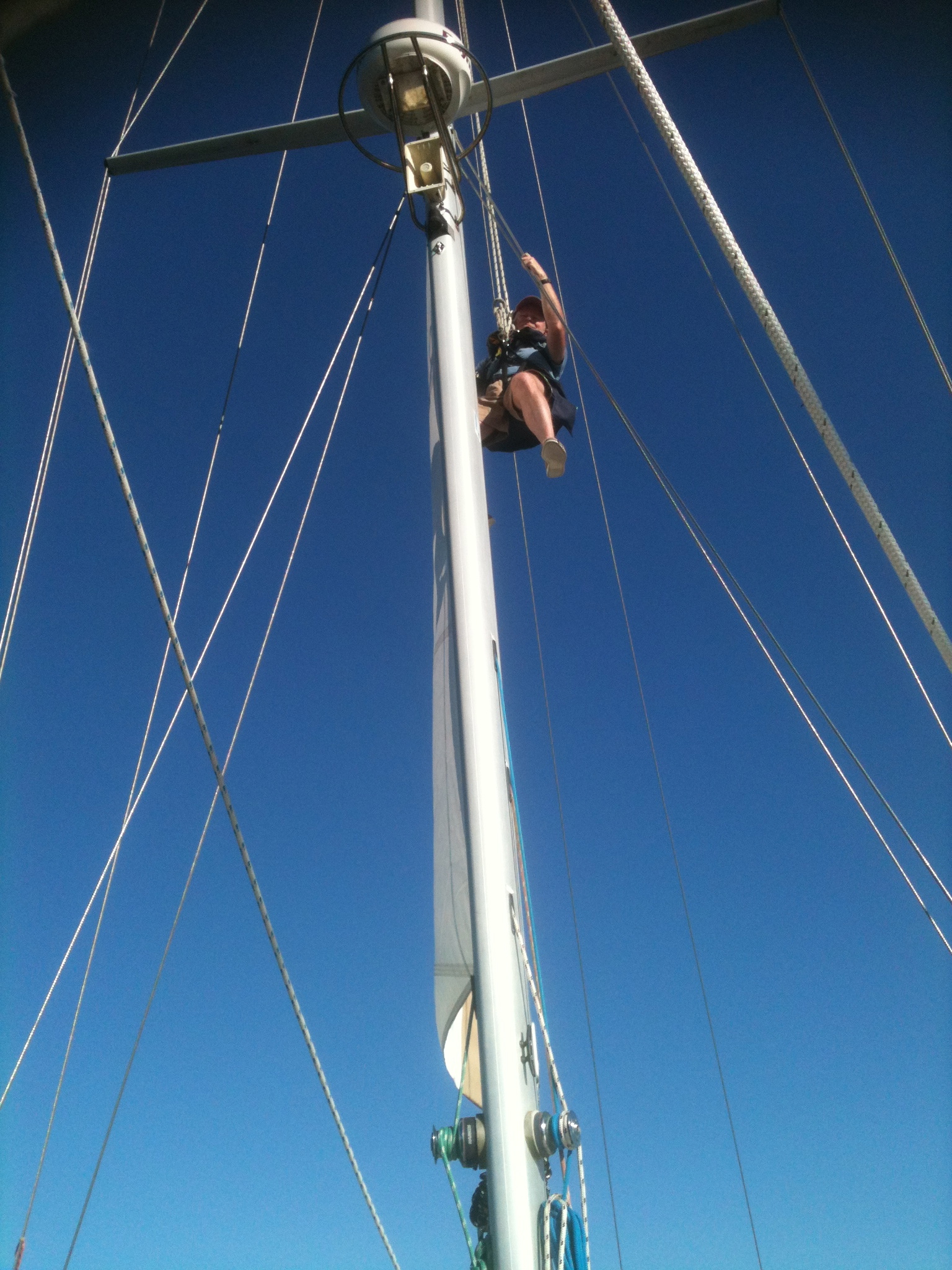 - the one small enough to go up the mast in the bos’un’s chair (but thankfully fellow crew Alison is even lighter!),
